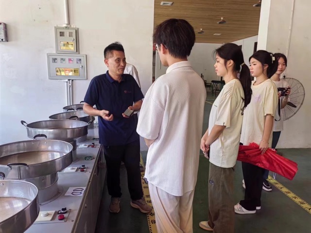 四甫茶場負責人向實踐隊成員介紹現代制茶技藝(鄭婕 供圖)