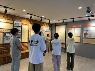 實踐隊成員在主題館聽講解員講述下岐村歷史(鄭婕 供圖)