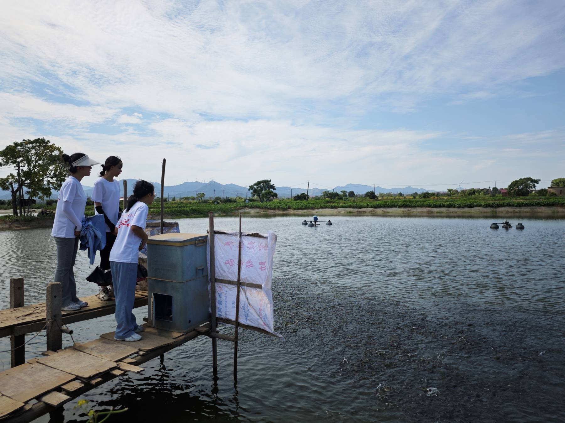 圖為實(shí)踐隊(duì)隊(duì)員們實(shí)地探訪塘西村魚塘