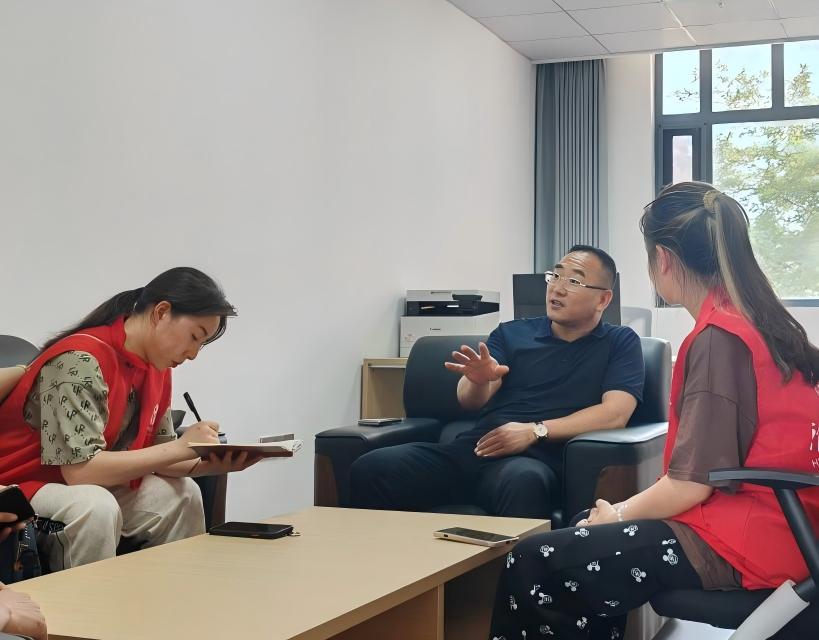 在杜集區,團隊前后赴雙龍社區和高岳街道高岳社區黨群服務中心開展調研。在雙龍社區,隊員與社區副書記交流,初步了解了社區的基本情況。隨后團隊與雙龍雅舍小區物業負責人訪談,進一步了解到該社區采用“記錄式”小區化管理模式,這種模式充分考慮居民訴求,切實為居民辦實事。在高岳社區,團隊成員與當地環保負責人進行訪談后,分組前往周邊社區開展細致調研,收獲頗豐。
