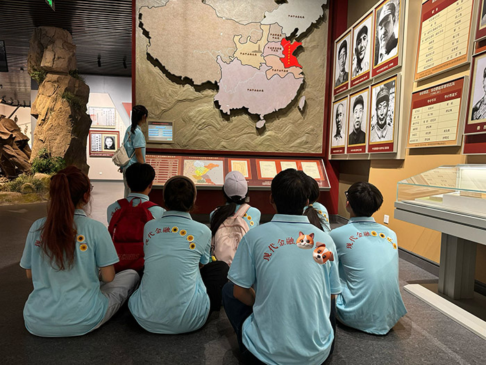 在支教活動期間,志愿者們還參加了紅色研學之行。為深入學習紅色文化,深刻感受革命先輩們堅定的理想信念,研學活動于中共華東中央局舊址開展。在老師的帶領下,志愿者們參觀了各個展廳,重溫了解放戰爭時期華東地區波瀾壯闊的革命歷程,體會了“小車推出來的勝利”背后黨群同心的力量。