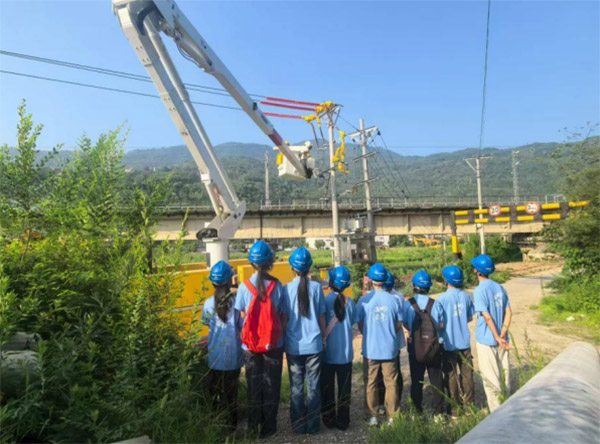 電力探秘:從作業(yè)現(xiàn)場到智慧電網(wǎng) 電網(wǎng)作業(yè)現(xiàn)場:見證責(zé)任與擔(dān)當(dāng) 7月14日清晨,朝陽初綻,實(shí)踐隊(duì)便奔赴國家電網(wǎng)作業(yè)現(xiàn)場。八點(diǎn)多的現(xiàn)場,已有電力工作人員身著專業(yè)裝備忙碌開來。他們在保障用戶“零感知”的嚴(yán)苛要求下,嫻熟地攀爬、操作,完成電線維修作業(yè)。安全圍欄外,隊(duì)員們凝神注視,從設(shè)備檢查到故障排除,每一個(gè)嚴(yán)謹(jǐn)步驟都清晰入目。通過近距離觀摩和現(xiàn)場工作人員的專業(yè)介紹,大家深刻體會到電力工作者守護(hù)城市“光明”的責(zé)任與堅(jiān)守,那專注的神情、利落的動(dòng)作,成為隊(duì)員們對電力行業(yè)初印象的生動(dòng)注腳。