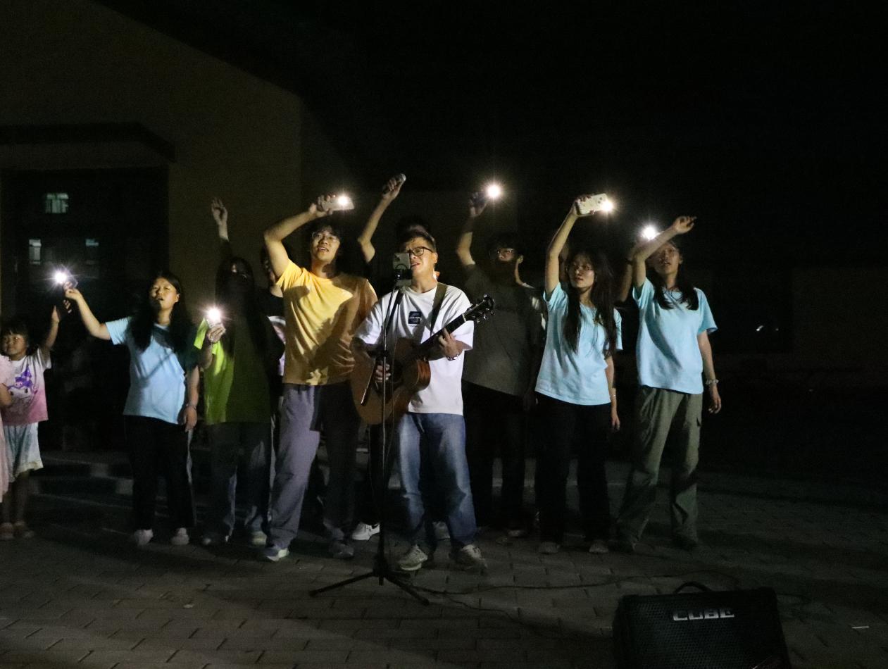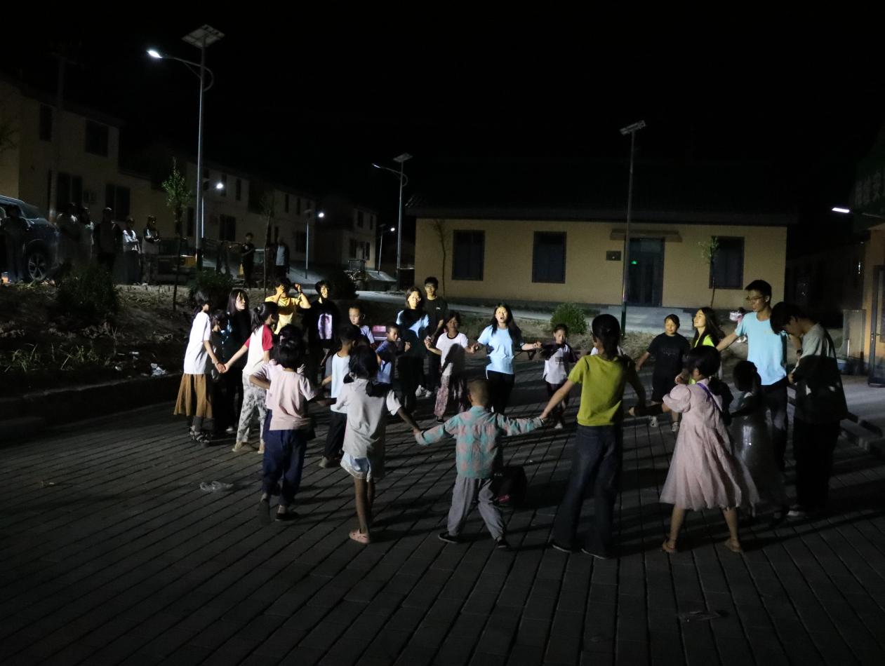 當晚的文藝聯歡活動吸引了眾多村民駐足觀看。活動以師生合唱紅色經典歌曲開場,隨后進行了才藝展示、集體舞蹈等環節。實踐團成員精心設計的互動游戲和文藝表演,不僅讓孩子們熱情參與,更讓現場觀眾沉浸其中。活動持續近三小時,現場掌聲不斷,氣氛熱烈。
