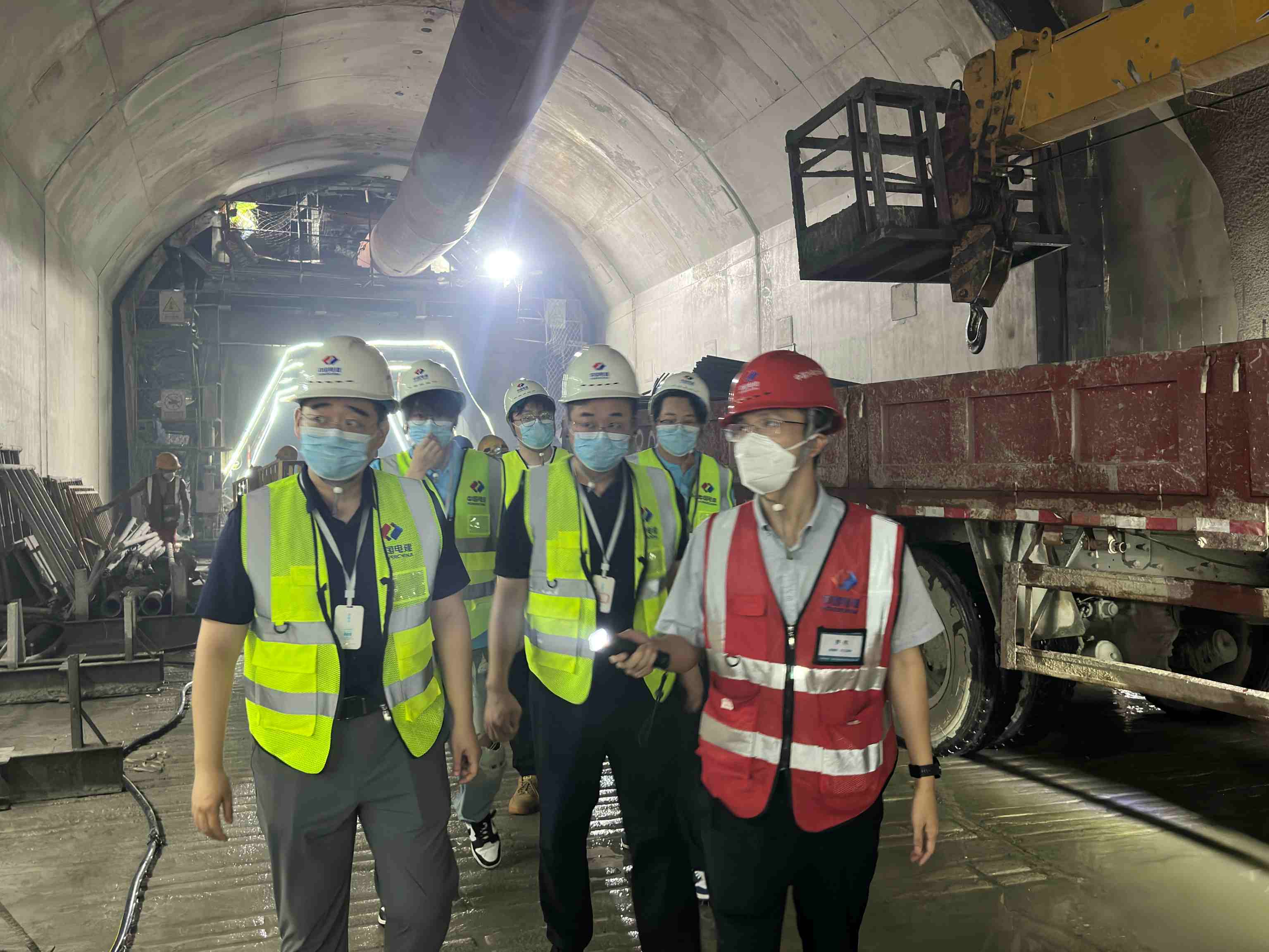 洞見匠心:施工技藝的實地體悟在項目技術負責人的帶領下,團隊成員頭戴安全帽、身穿反光背心,深入地下隧洞內部實地考察,切身感受“千米巖腹筑水脈”的工程壯景。沿著隧洞前行,耳邊是機械轟鳴與交叉作業的井然節奏,眼前則是巨大的拱形開挖面與高效運轉的智能監測設備。