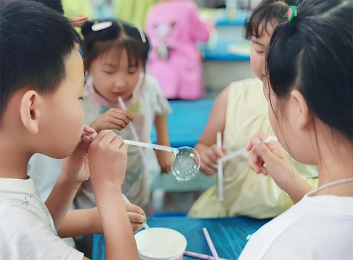 在這個過程中,孩子們不僅感受到了實驗的樂趣,更在團隊成員文智龍的講解下,了解了背后的科學原理,認識到不同物質(zhì)對泡泡表面張力的影響。這種親身體驗的科學實驗,激發(fā)了孩子們對科學的濃厚興趣,在他們心中種下了探索科學的種子,讓他們明白科學并非遙不可及,就在我們身邊的一草一木、一舉一動之中。