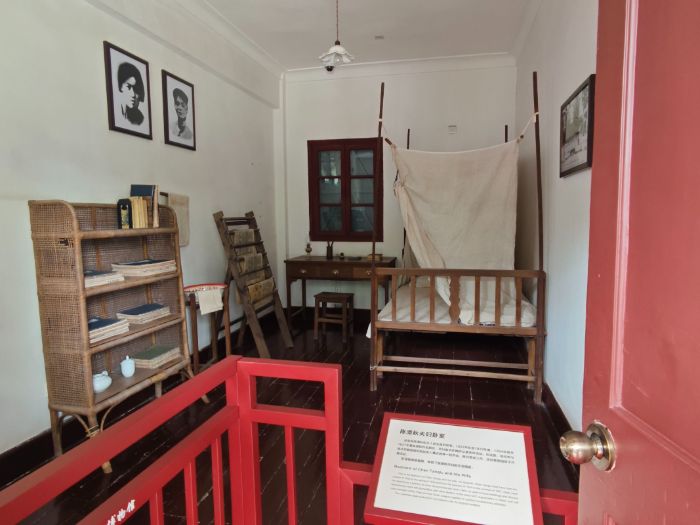 湖北是陳潭秋的故鄉,武漢是陳潭秋走上革命道路的起點,也是他早期從事革命斗爭的舞臺。從1920年到1927年,陳潭秋和董必武等人篳路藍縷,艱辛開拓,創建發展湖北黨組織,帶領湖北人民英勇奮斗。在踏入陳潭秋紀念館的那一刻,仿佛穿越時空的隧道,走進了一段波瀾壯闊的革命歲月,內心被一種厚重而莊嚴的情感所充盈。這里復原陳列著陳潭秋臥室,陳潭秋和夫人徐全直曾居住于此;臥室的隔壁,就是“陳潭秋在武漢”的展廳。展廳不大,入口處矗立著陳潭秋的銅塑半身像。展廳分為三個部分:參與建黨、喚起民眾、投身大革命,通過照片、實物、模擬場景及視頻再現了陳潭秋在武漢度過的革命崢嶸歲月。