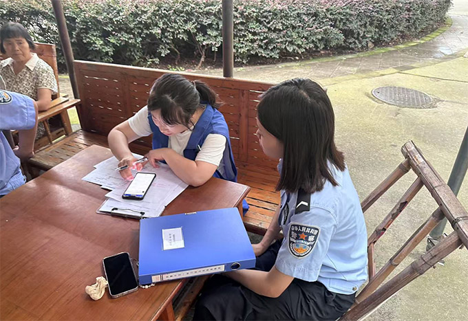 在基層治理的宏大拼圖里,準確的人口登記信息是至關重要的板塊,它關乎著社區的有序運行與居民生活的便利。7月24日,中央司法警官學院三下鄉2025年暑期志愿“利劍護航,法治星火燎原”團隊,與丹景山派出所民警、社區工作人員緊密攜手,深入開展人口登記工作,將貼心服務直抵居民家門口。