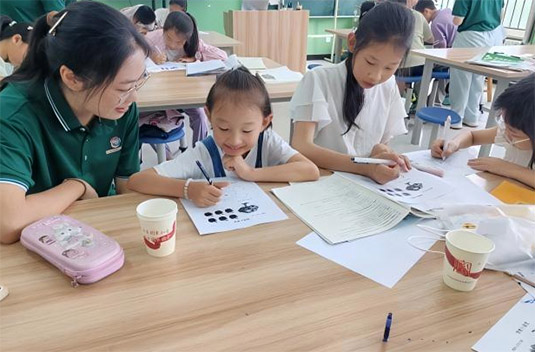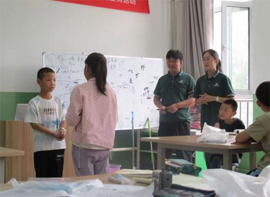 圖為志愿者指導孩子畫健康的蘋果樹吉萬齊供圖