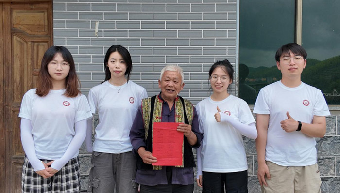 (圖為實踐團成員與花瑤山歌省級傳承人奉錫料合影)