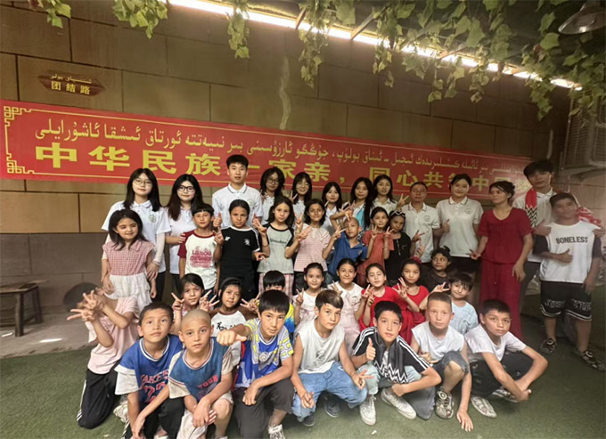 婚禮在漸漸低回的樂聲中落下帷幕,學子們的行囊里,悄悄多了幾樣特殊的“收獲”:縈繞耳畔、揮之不去的十二木卡姆旋律,肩頭象征民族團結的艾德萊斯綢,還有維吾爾族小朋友們綻放著熱情與純真的笑臉。這些帶著溫度的“物件”,成了民族團結最生動的見證。實踐團成員們說,這次“三下鄉”之旅,讓他們讀懂了“各民族像石榴籽一樣緊緊抱在一起”的深刻含義。未來,他們將帶著這份滾燙的記憶,繼續行走在非遺傳承與鄉村振興的路上,讓青春在促進民族團結的實踐中綻放光彩。