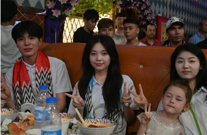 (通訊員:劉剛 熊琰 陳珈貝)“非遺十二木卡姆引領致富興疆路”鄉村振興實踐團通訊站網訊:民族交往交流交融是中華民族形成、發展和繁榮的內在動力,鑄牢中華民族共同體意識是新時代黨的民族工作的主線。2025年7月9日,重慶對外經貿學院“非遺十二木卡姆引領致富興疆路”鄉村振興實踐團受邀參與新疆喀什地區葉城縣一場傳統婚禮,在十二木卡姆的悠揚旋律中,上了一堂別開生面的“三下鄉”實踐課,為鑄牢中華民族共同體意識寫下生動注腳。