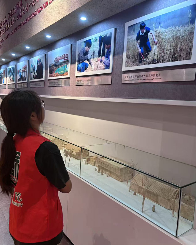 近日,滁州學院三下鄉(xiāng)社會實踐團隊走進安徽省鳳陽縣小崗村,開展以“學習沈浩精神,汲取奮進力量”為主題的社會實踐活動,深入了解沈浩同志先進事跡,并積極向當地群眾和游客宣傳沈浩精神,展現新時代青年的責任與擔當。團隊成員抵達小崗村后,首先參觀了沈浩同志先進事跡陳列館。在陳列館內,一件件實物、一幅幅照片、一段段影像資料,生動展現了沈浩同志在小崗村任職6年間,帶領村民修路筑橋、發(fā)展產業(yè)、改善民生的艱辛歷程與卓越成就。通過講解員的詳細介紹,團隊成員深刻感受到沈浩同志扎根基層、一心為民、無私奉獻的高尚品質和對這片土地的深厚情懷。