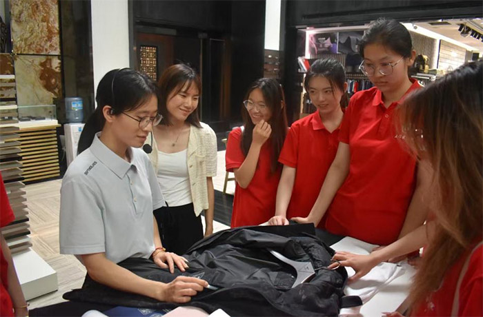 男裝博物館呈現行業演進:民國盤扣長衫、改革開放簡款夾克到智能科技服飾,呼應醫學從傳統診療到精準醫療的升級。當 “誠信、求實、敬業、奉獻” 幾個字映入眼簾,學生們聯想到醫學生誓言,深感晉江企業家精神與醫者職業內核的高度契合。