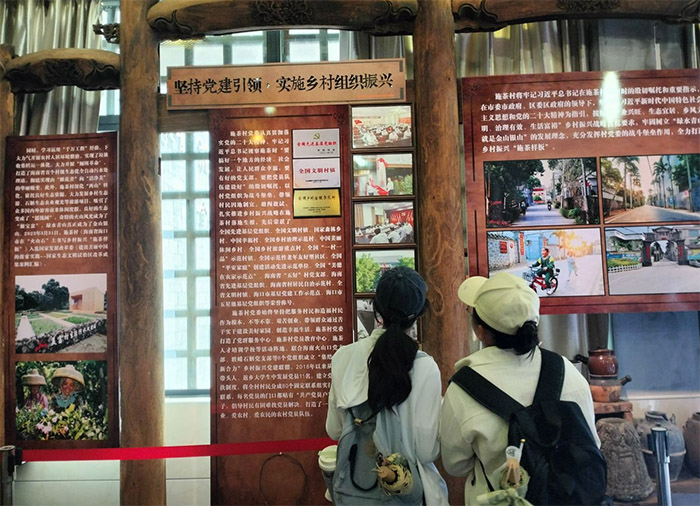 圖為實(shí)踐團(tuán)成員在村史館參觀學(xué)習(xí)施茶村村史。楊善芳 供圖