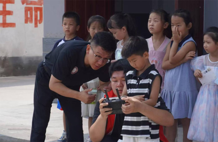 圖為實踐團隊在教小學生們試飛無人機鄧磊供圖