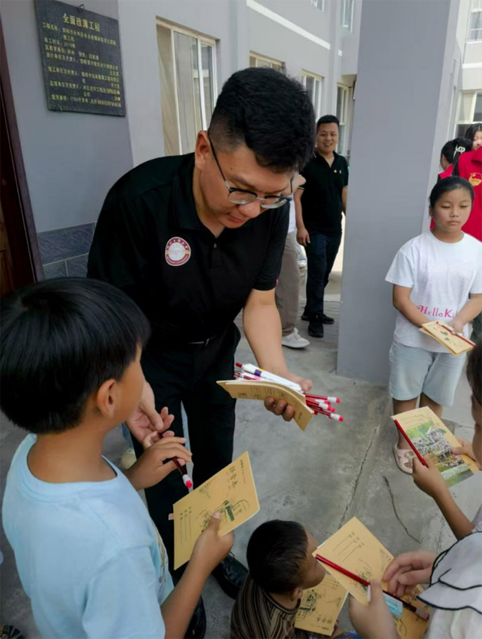 圖為實踐團隊為孩子們發放學習用品,鼓勵孩子們好好學習劉航濤供圖