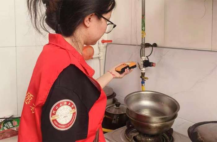 圖為實踐團隊用專業檢測設備對天然氣管道接口、閥門密封性進行全面排查劉佳利供圖