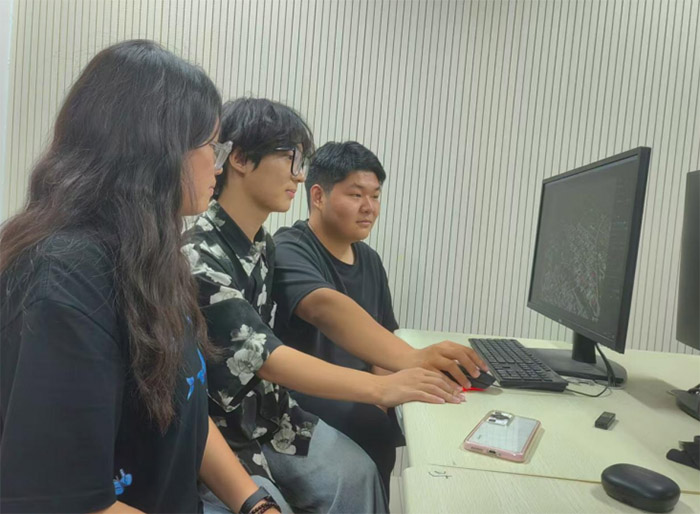 圖為實踐團隊用無人機采集完米窯村數據信息后進行內業處理李柯嬌供圖