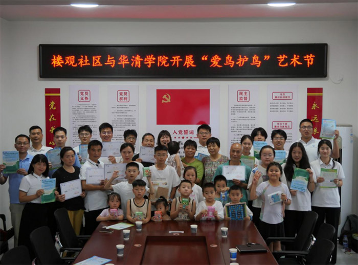 圖為實踐團在樓觀社區舉辦主題護鳥藝術節合照。張愉翔 供圖