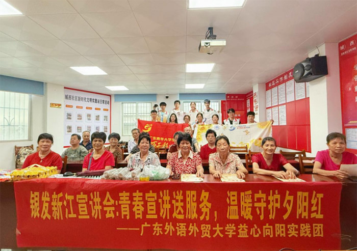 在人口老齡化趨勢日益顯著的當下,銀發經濟已成為推動社會發展的新增長點。本次暑期,“百千萬工程”突擊隊——廣東外語外貿大學益心向陽實踐團深入河源市源城區新江街道,開展了一系列以賦能銀發經濟為主題的實踐活動,用青春力量為當地老年事業發展注入新活力。