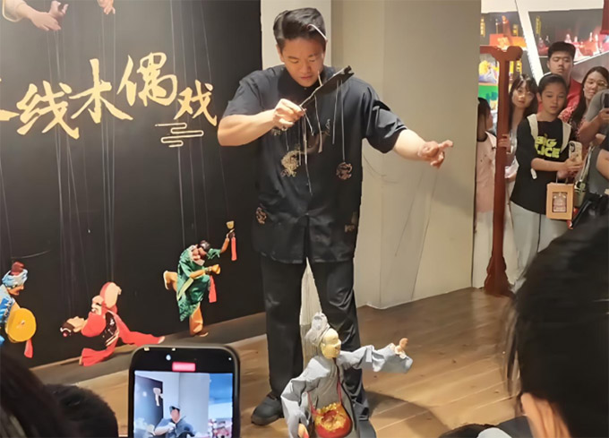 觀看木偶戲表演是此次體驗(yàn)的重頭戲。藝人們精心準(zhǔn)備了一場精彩的木偶戲,木偶們在舞臺上或說或唱、或舞或戰(zhàn),動作流暢自然,表情惟妙惟肖,仿佛有了生命一般。隊(duì)員們目不轉(zhuǎn)睛地盯著舞臺,完全沉浸在表演中,被木偶們生動的演繹深深吸引。表演結(jié)束后,掌聲雷動,隊(duì)員們紛紛與藝人交流,探討木偶戲的傳承現(xiàn)狀與創(chuàng)新路徑。