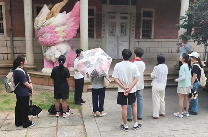實(shí)踐隊(duì)師生聽講解員講解紅磚歷史文化