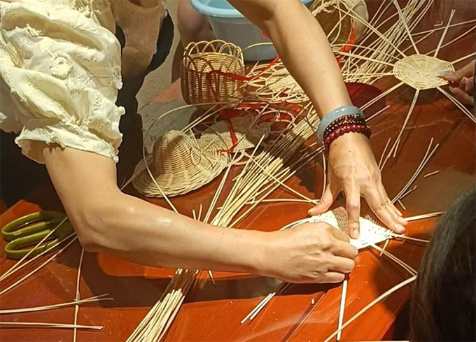 展廳里,紙織畫的精巧、妝糕人的可愛、彩扎的艷麗、花燈的璀璨……各種非遺作品琳瑯滿目,隊(duì)員們紛紛駐足欣賞,贊嘆不已。安溪竹藤編造體驗(yàn)環(huán)節(jié)將活動推向高潮。在傳承人的指導(dǎo)下,隊(duì)員們從生疏到熟練,逐漸掌握了編織技巧。竹藤在指尖穿梭,一件件充滿創(chuàng)意的手工藝品逐漸成形。通過親手實(shí)踐,隊(duì)員們不僅感受到非遺技藝的獨(dú)特魅力,更領(lǐng)悟到傳承人堅守傳統(tǒng)的匠心精神。
