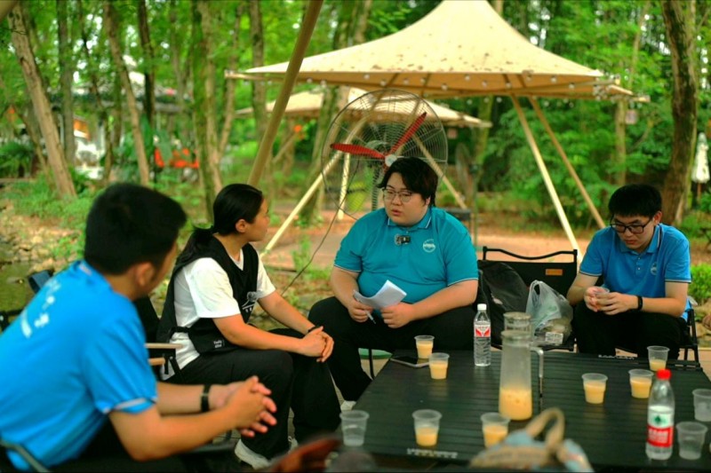 圖為馮子丹女士與團隊成員交流營地基本情況。段晨磊 供圖
