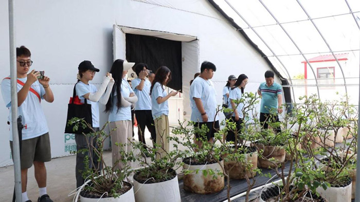 圖為隊員們在大棚內聽劉經理講解現代農業技術的變化。王碩 供圖