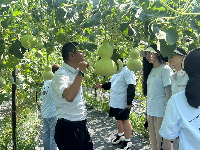 在太平葫蘆產業園,大大小小、形態各異的葫蘆烙畫工藝品琳瑯滿目。徐書記向隊員們熱情分享了從成立天津太平葫蘆文化傳承中心、免費舉辦葫蘆烙畫技藝培訓班、助農增收和非遺增生的故事。“我就想讓鄉親們都過上好日子”,他動情地說,“特別是幫助殘疾人和低保戶靠自己的雙手脫貧致富!”這份鄉土情懷深深打動了隊員們,他們也學習到了葫蘆烙畫在鄉村振興、文化傳承中的品牌魅力。
