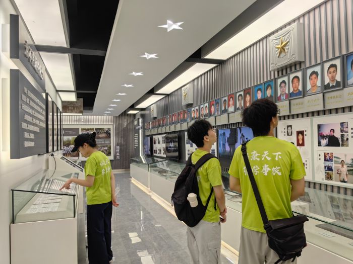 實踐團參觀柏墊本地革命歷史紀念館,通過豐富史料與實物展陳,重溫革命戰爭年代的崢嶸歷程。步入英烈山紀念館,一幅幅珍貴的歷史照片、一件件斑駁的革命文物、一幕幕生動的戰斗場景再現,將隊員們帶回到那段烽火連天的崢嶸歲月。 浮雕墻全景呈現柏墊鎮歷史脈絡,館內集中陳列航空英烈手稿與遺物。團隊成員近距離觀摩展品,深切感受革命老區的不屈精神與國防軍工事業的忠誠奉獻。在講解員引導下,先輩們浴血奮戰的英勇事跡清晰展現,其擔當精神與奉獻品格引發團隊深刻思考。團隊成員單婧怡談及參觀感受時提到,此次教育實踐強化了傳承紅色基因的使命感,激勵青年群體將個人成長融入國家發展大局。