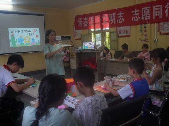 實踐隊為孩子們講述紅色故事并開展DIY貼畫活動
