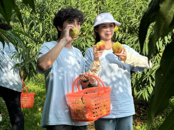 在雨橙山莊,隊員們頂著烈日采摘鷹嘴桃、分揀裝箱,動作雖不熟練卻格外認(rèn)真。他們還化身助農(nóng)主播,通過直播推介農(nóng)特產(chǎn)品,為鄉(xiāng)村振興注入青春活力。此外,隊員們還體驗了掰玉米等農(nóng)事活動,在汗水中深刻體會到農(nóng)民的艱辛與付出。