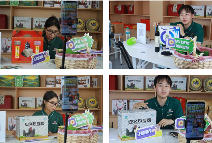 隊員們在直播間以流利標準的普通話,化身“安義特產帶貨主播”,熱情地介紹著當地特色農產品安義瓦灰雞、宗山手工米粉、利邦土蛋蛋、黃洲有機大米、春暉藍莓、春暉藍莓酒、油油天地菜籽油等品牌,為觀眾從實用角度、養生角度等介紹產品特性、優勢和食用方法。直播時用活潑語調,結合包裝細節展示,深入講解產品優勢。還穿插安義當地文旅和安義民謠和鄉村新貌,讓包裝里的特產飄出“文化香”,讓大家多方位認識安義,了解安義。在直播過程中,主播們認真用普通話講解農產品名稱發音和相近詞語的區分,分享普通話發音技巧、易錯點等知識,讓觀眾們聽得懂,聽得有趣,聽得有所收獲。讓直播間作為商品推廣和銷售平臺的同時,更是居民們學習和交流普通話的平臺。