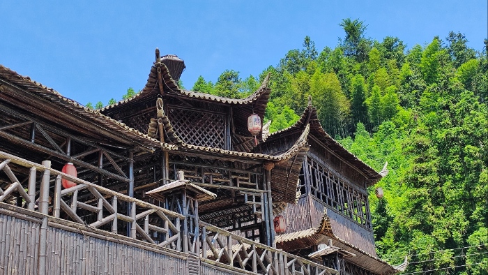 圖為壯瑤干欄式少數民族建筑