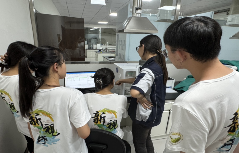 7月9日上午,在蘇主任的引薦下,團隊一行前往公司化學實驗室開展調研。實驗室負責人系統介紹了各類實驗儀器的功能與應用場景,并引導團隊成員簡單觀摩了鹽堿地改良相關實驗流程。期間,團隊成員親身體驗了土壤pH值測量操作,直觀感受了科研人員的日常工作狀態,對鹽堿地改良技術有了更深入的認識。