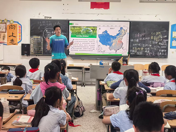 三、校園啟蒙植理念,童心守護水生態 7月5日實踐團走進誠信小學開展“守護水生態安全”主題宣講通過認知啟蒙、科學普及、行動倡導(帶領學生集體朗讀水資源保護的口號,發起節水承諾簽名活動)