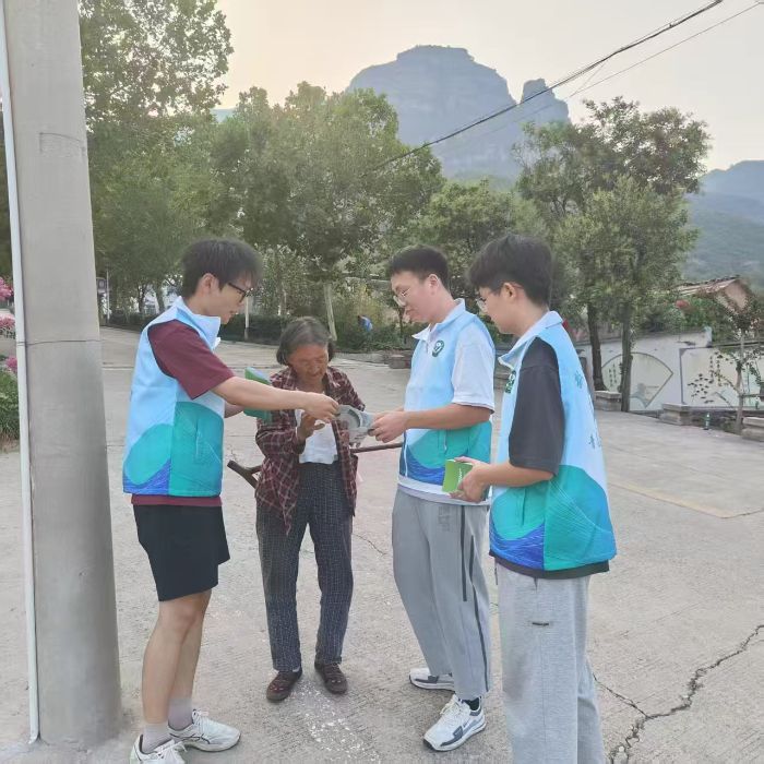 2025年暑假期間,實踐團走進紅旗渠村鎮的活動中心和小學,開啟“精準推普”行動,分發宣傳頁并利用PPT進行詳細講解。在活動中心,志愿者們用方言與普通話對照、情景模擬對話等形式,手把手教老人學習“買菜就醫”“通訊聯絡”等高頻場景用語,還結合紅旗渠故事用普通話紅色往事;小學教室里同樣氣氛熱烈。志愿者通過PPT展示紅旗渠建設老照片,結合“愚公移山”“艱苦奮斗”等成語,將普通話教學融入紅色教育,激發同學們學習普通話的興趣。