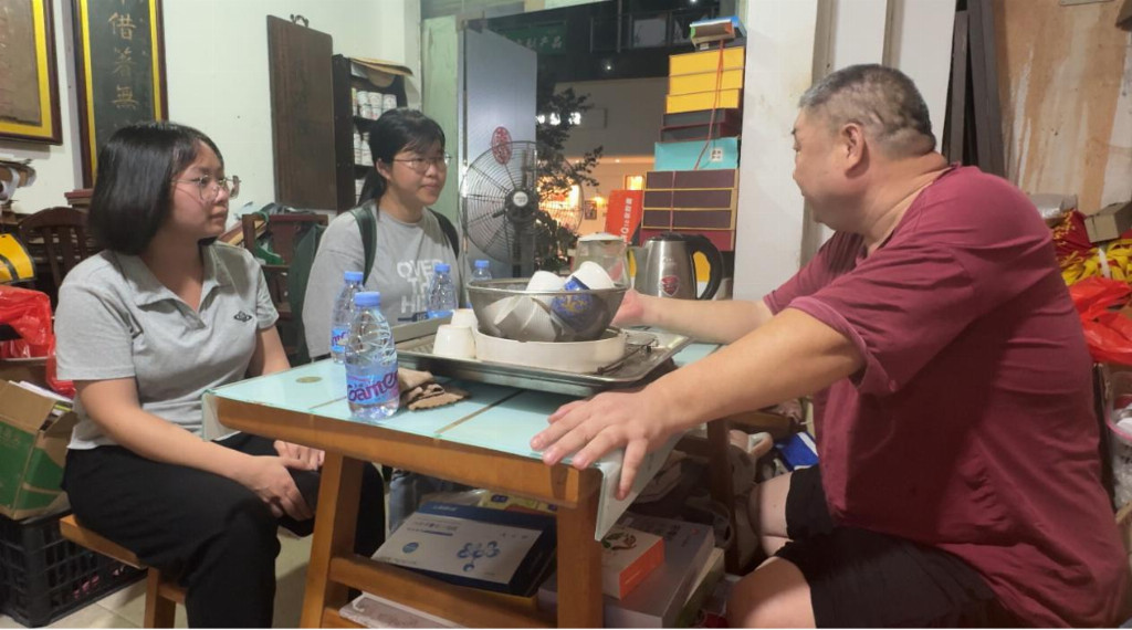 于永安東南抗戰(zhàn)文獻(xiàn)資料庫(kù),實(shí)踐隊(duì)與永安地方文史專家安孝義進(jìn)行深入交流,安老師強(qiáng)調(diào),黨史研究需“大處著眼”梳理歷史主線,“小處著手”探究事件關(guān)聯(lián)。他展示的抗戰(zhàn)書籍,生動(dòng)還原了文化工作者以筆為槍、用文字抗戰(zhàn)的壯闊圖景。