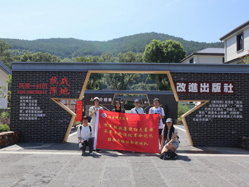 在中國(guó)人民抗日戰(zhàn)爭(zhēng)暨世界反法西斯戰(zhàn)爭(zhēng)勝利80周年、臺(tái)灣光復(fù)80周年之際,福建師范大學(xué)文學(xué)院“弦歌永繼”實(shí)踐隊(duì)赴永安市多地,通過(guò)梳理相關(guān)史料、開(kāi)展實(shí)地考察、進(jìn)行深度采訪等方式,梳理永安抗戰(zhàn)時(shí)期文藝發(fā)展歷史,以青春之力傳承先輩偉大精神。
