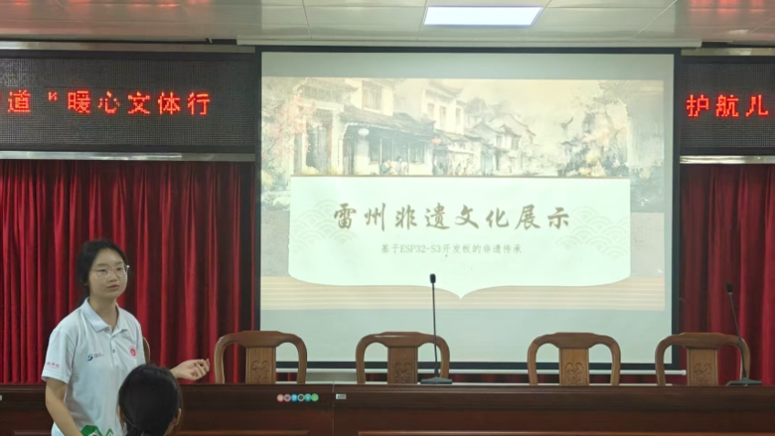 當在學校研究的AI工具遇上雷州非遺,會碰撞出怎樣的火花?在西湖社區的課堂上,隊員們把精心研發的AI互動工具搬了出來,隊員結合嘉立創實戰派開發板ESP-32-S3制作硬件AI非遺文化宣傳機器人,搭載上了近期熱門的AI大模型的deepseek V3。隊員通過互動問答的形式,讓孩子們了解了湛江醒獅的凜凜威風、雷州石狗的傳說和雷劇的歷史淵源等知識。