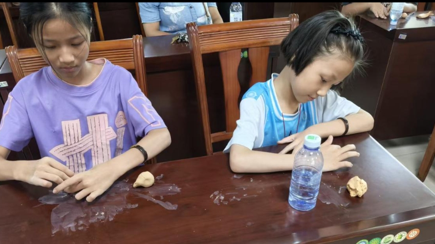 隊員們帶領孩子們開展動手實踐活動——捏制雷州石狗,深受社區孩子們的歡迎。孩子們的小手在黏土上忙碌,有的捏出威風凜凜的“守護神”,有的捏出憨態可掬的“小伙伴”,雖然線條稚嫩,卻滿是童趣與想象。