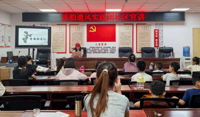 圖為實踐團成員采訪藺老師的情景。 周恩佳 供圖八月六日和七日,實踐團來到位于晉南的永濟市,在永濟市城西街道櫻花黨群服務中心準備并開展了非遺主題宣講活動。活動提前邀請了社區里的小朋友及家屬參加,隊員們分工協作,現場氛圍熱鬧融洽。劉恬靜同學在臺上為大家講述了孝義皮影與絳州澄泥硯的相關內容,生動展示了非遺的獨特魅力。隨后,隊員們拿出準備好的皮影DIY材料分發給小朋友,進行皮影人物制作。期間歡聲笑語不斷,結束后眾人一起合影留念。