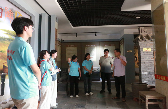 圖為實踐團成員在泥陶館聽汲館長講解并記錄傳統工藝。趙志誠 供圖