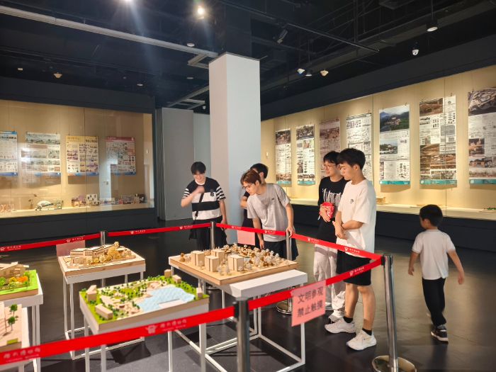 轉身之間,隊員們被一組現代城市與建筑的構想模型吸引,紛紛圍攏觀察。這些模型是滁州學院學子們的畢業設計,凝聚著青年學子對家鄉未來的思考與創意。玻璃展柜里的老物件與眼前的實體模型交相輝映,仿佛跨越時空的對話,讓大家讀懂了滁州的“雙面”特質:一面是烽火淬煉的紅色底蘊,承載著不屈的精神與光榮的傳統;一面是日新月異的現代鋒芒,彰顯著創新的活力與發展的潛力。紅色根脈如何滋養城市生長?滁州用實際行動給出了答案:讓紅色基因成為領航未來的力量,在傳承中創新,在發展中堅守。
