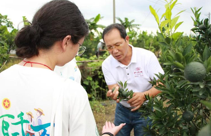 扎根基層,匯聚多方智慧 實踐團走進會城街道團工委,匯報果肉回收項目進展并探討難題,雙方達成深化合作、推動成果轉化的共識。在陳皮村,團隊向商戶推廣回收平臺獲支持;壹合茶葉茶行負責人分享果肉壓榨成汁、殘渣發酵等處理經驗,肯定回收小程序并提出優化建議,還以退伍軍人創業者身份,為大學生創業提供陳皮產業開發、合伙制經營等實用思路。軒祿號認養基地的葉會長則強調“新會種(子)、新會種(植)、新會陳”的核心特質,分享果樹養護知識與創業歷程,讓隊員們深入理解陳皮品質的關鍵影響因素。