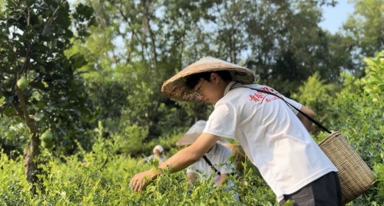 為更真切地了解莓茶產業源頭,實踐團成員深入莓茶種植基地,親身參與采摘勞動。在茶農的悉心指導下,同學們頭頂烈日,學習識別莓茶嫩芽、掌握采摘手法,真切體會“一芽一葉”的來之不易。汗水浸濕衣衫的過程,不僅是一次深刻的勞動教育,更讓實踐團成員直觀感受到莓茶種植的艱辛與茶農的匠心堅守,深化了對產業基礎的理解和尊重,為后續精準幫扶注入了更真切的情感動力。這份從泥土中獲得的認知,成為團隊調研與實踐的重要基石。