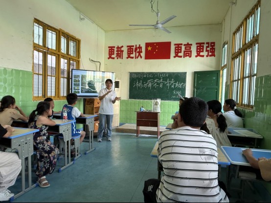 在助力產業的同時,實踐團在石堤鎮開展了豐富多彩的“湘西莓茶香,青春助農興”主題支教活動。團隊成員精心設計課程,向孩子們生動展現湘西獨特的莓茶魅力。讓孩子們在互動中了解家鄉的莓茶與文化。這些活動不僅豐富了暑期生活,更在孩子們心中深植了熱愛家鄉、珍視傳統文化的種子,有效促進了文化自信的樹立。