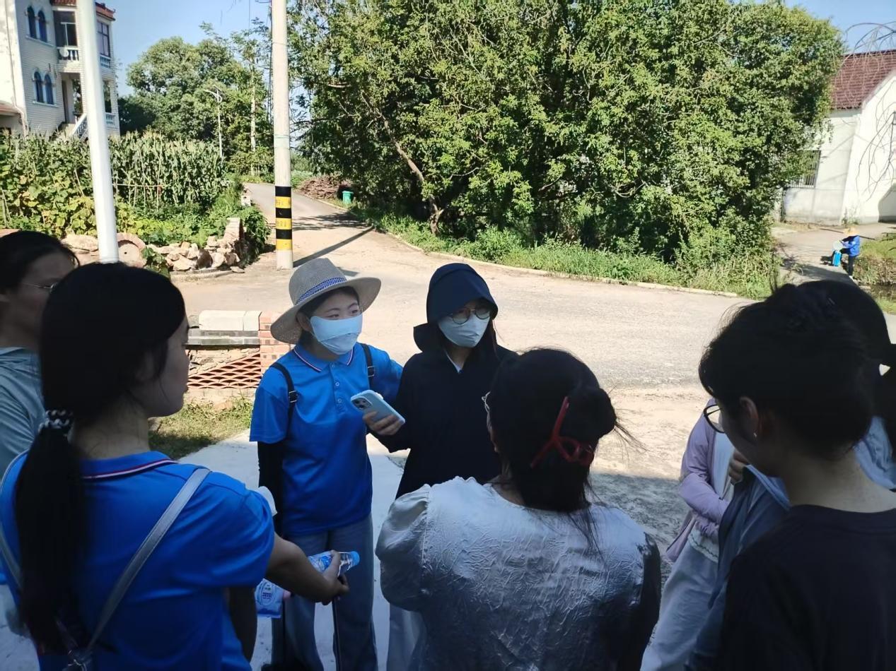 活動開始,團隊在郭文靜老師帶領下抵達新和村。團隊與政府負責人葉明月、村委會負責人汪紅梅展開了一場深入的座談。葉明月詳細介紹了十字鎮的生態發展規劃,提到新和村的櫻花景觀已形成規模化種植,每年春季都會吸引周邊市縣的游客前來觀賞,成為村里的一張生態名片;而毗鄰的揚子鱷自然保護區,則是當地生態保護成果的重要體現,多年來的守護讓這一珍稀物種的棲息地得到了有效擴展。