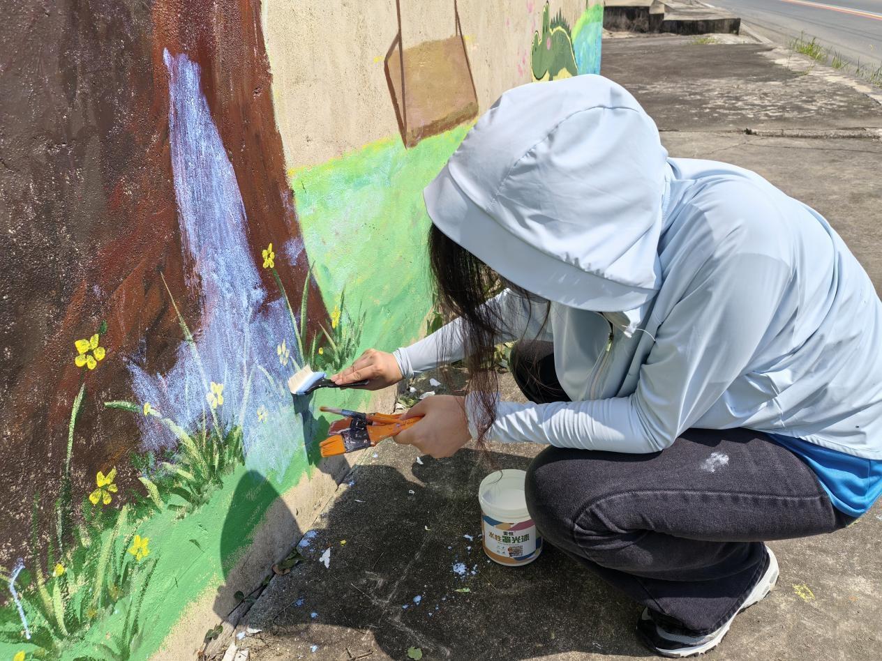 圖為實踐團隊成員黎文瑤正在繪制墻繪。姜雨馨 供圖